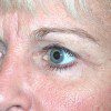 Blepharoplasty in this 61 year old white female involved skin excision from the upper lids and the removal of fat as well as skin from the lower lids. Best seen from oblique view.