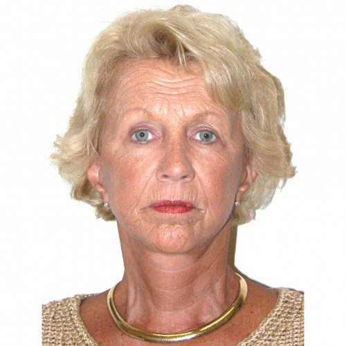 Compounding the structural features of aging in this 65 year old patient are the changes associated with chronic skin damage due to sun exposure. A facelift can triangulate the face, remove the neck folds, and reduce jowl formation, but the skin changes will require ongoing surface treatments such as laser or peels.